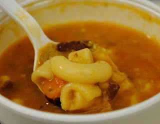 By the time lunch rolled around I was hungry. I started off with some Pasta Fagoli soup. It was okay, I don’t like tomato’s in my soups and this had some in it. But I was crafty and picked around those pesky tomato’s.