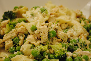 Lunch was just okay and for the calories I spent, it should have been a lot better. Lesson learned on my part. I had a pasta dish of bow tie pasta, chicken, garlic, peas and broccoli. The sauce was a little bit of alfredo sauce and pesto.