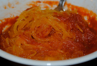 Leftover spaghetti squash with tomato sauce and garlic. I can’t believe how well this stuff heats up. Next time I go to Whole Foods I’m buying a BIG spaghetti squash so we can have leftovers for lunch.
