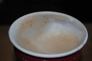 Stopped at Caribou and picked up a low-fat Vanilla latte. I love that Caribou gives me 3 shots of espresso with the large latte!