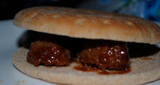 I took 1 Deli Flat and cut 2 meatballs in half. Added a little cheese and chowed down! This was a scrumptious sandwich. I do believe I was constantly saying mmmmmm, while eating it!