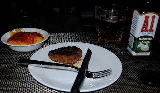 Here is a look at the dinner I cooked for my husband and I today. The complete meal was spaghetti squash with spicy marinara sauce and spicy steak.