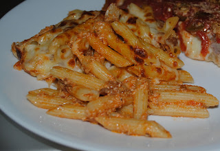 Penne ala Malnati which is folded cream and romano cheese in homemade meat sauce, topped with baked mozzarella.