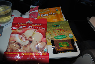I was starving once we go on the plane so I ordered some lunch around 11:30 am. On the plane they were sold out of almost everything so I ordered a anti-pasta plate. It included some dill cheese, a couple slices salomi, bread sticks and green olives: