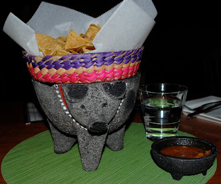 Once we were seated the waiter brought us this cute little piggy mortar filled with chips and some salsa on the side.