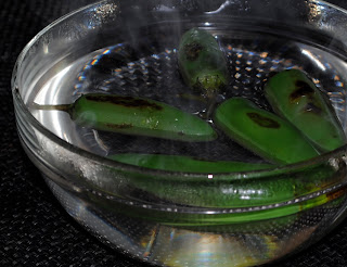 Put jalapenos into a medium/hot cast iron skillet until the peppers start to blister.