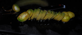 Once they start to blister transfer them from the skillet to a Pyrex type bowl.