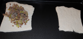 Fold dough around the meat and place on greased cookie sheet. I used olive oil on my pan.