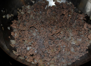Place 1 pound of lean ground beef and diced onions into hot skillet. Season with salt, pepper and Lawry’s Season Salt.