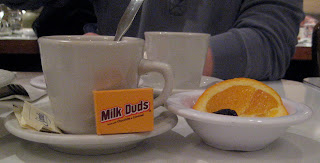 I started off with a cup of coffee with a splash of fresh pure cream. I also received a box of Milk Duds which are handed out to children and ladies.