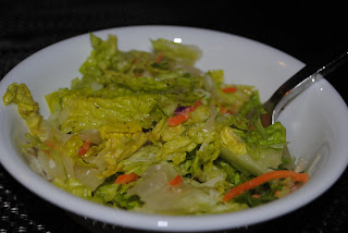 Salad with romaine hearts, carrots, cabbage, Parmesan cheese and lite ceasar dressing.