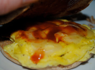 Place egg on sandwich thin and top with hot sauce.