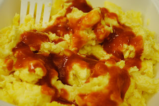 The ever filling, 2 scrambled eggs with a ton of hot sauce: