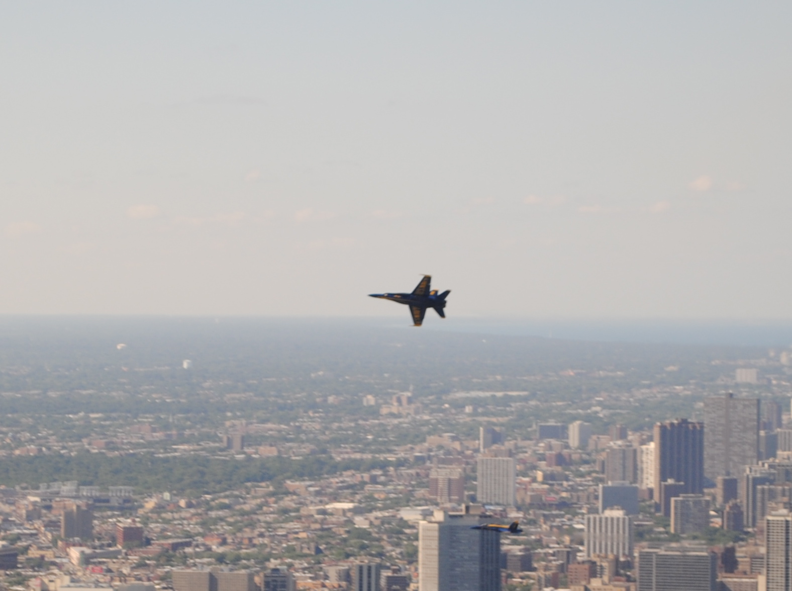 One of the many planes that flew over Lake Michigan. Little planes, big planes, helicopters (doing things we’ve never seen before!), sky divers and many more!