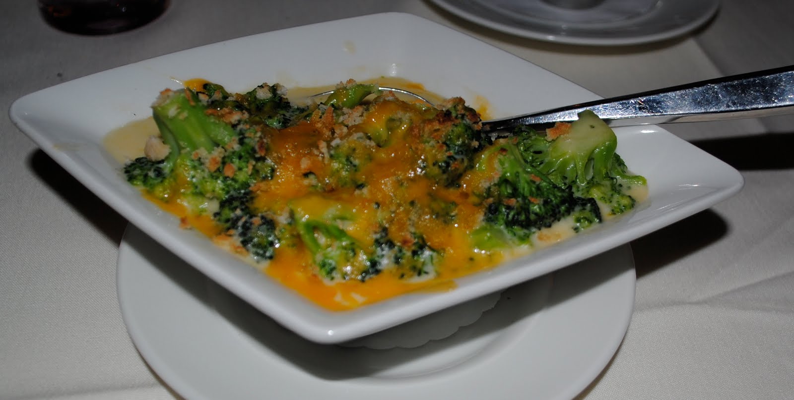 Our side dish was the Broccoli with Wisconsin cheddar gratin. This was good but didn’t live up to the perfection of the other dishes. It was a bit to buttery for me.