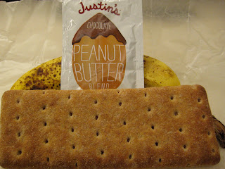 Today’s lunch was another packed creation (if you can call it that). It included a banana, sandwich thin and Justin’s Chocolate Peanut Butter: