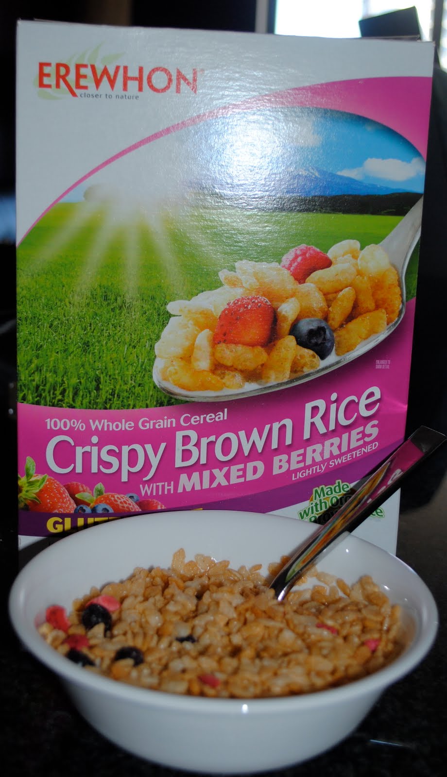 Pretty random. I started off with a traditional breakfast of cereal. Erewhon Crispy Brown Rice with Mixed Berries cereal that was included in the Healthy Living Summit swag bag.