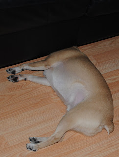 Solera is still a young dog with a ton of energy. When he does decide to relax for a minute he gets in the most unusual poses. This position doesn’t even look remotely comfortable!