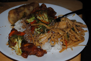My plate: I ended up eating half the egg roll, a little bit of noodles and some broccoli dish over rice.