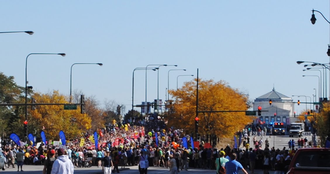 A whole lot of people cheering for all the amazing runners. Makes me happy to see the people of Chicago (my city!) being so supportive: