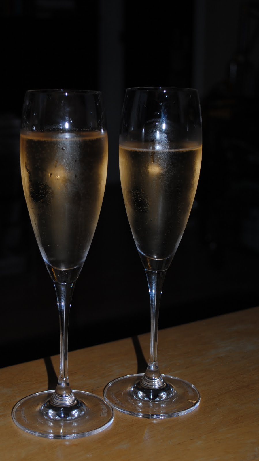 1st anniversary meal recap: Tombstone, tater tots and champagne – cause that’s how we roll;)