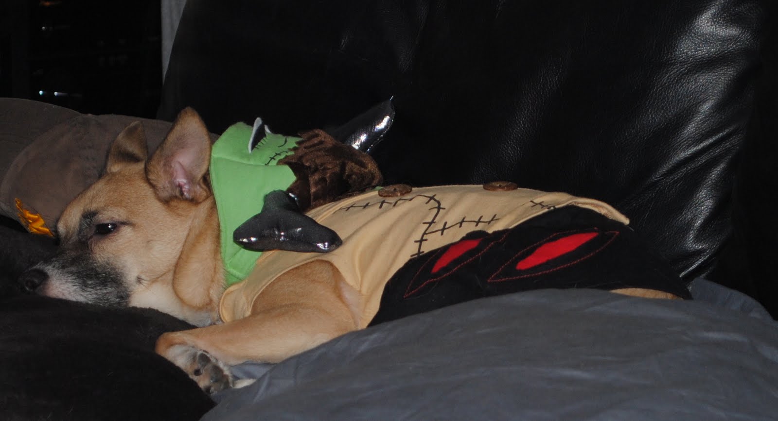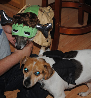 After I was all situated it was time to dress the dogs. Solera was Frankenstein and Cappy was a Bat dog.