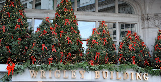 This is a picture of the decorated trees on the Wrigley Building. The Wrigley Building is located on the famous Michigan Avenue.